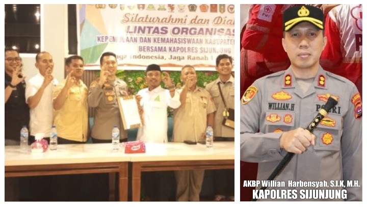 SIJUNJUNG |  Kapolres Sijunjung AKBP Willian Harbensyah SIK MH tampil sebagai figur sentral dalam sebuah momentum kebersamaan antara kepolisian dan generasi muda Kabupaten Sijunjung Rabu 24 September 2025 Melalui silaturahmi dan dialog terbuka dengan berbagai organisasi kepemudaan dan kemahasiswaan Willian berhasil merajut komitmen bersama untuk menjaga ketertiban keamanan serta memperkuat semangat persatuan di Ranah Lansek Manih
