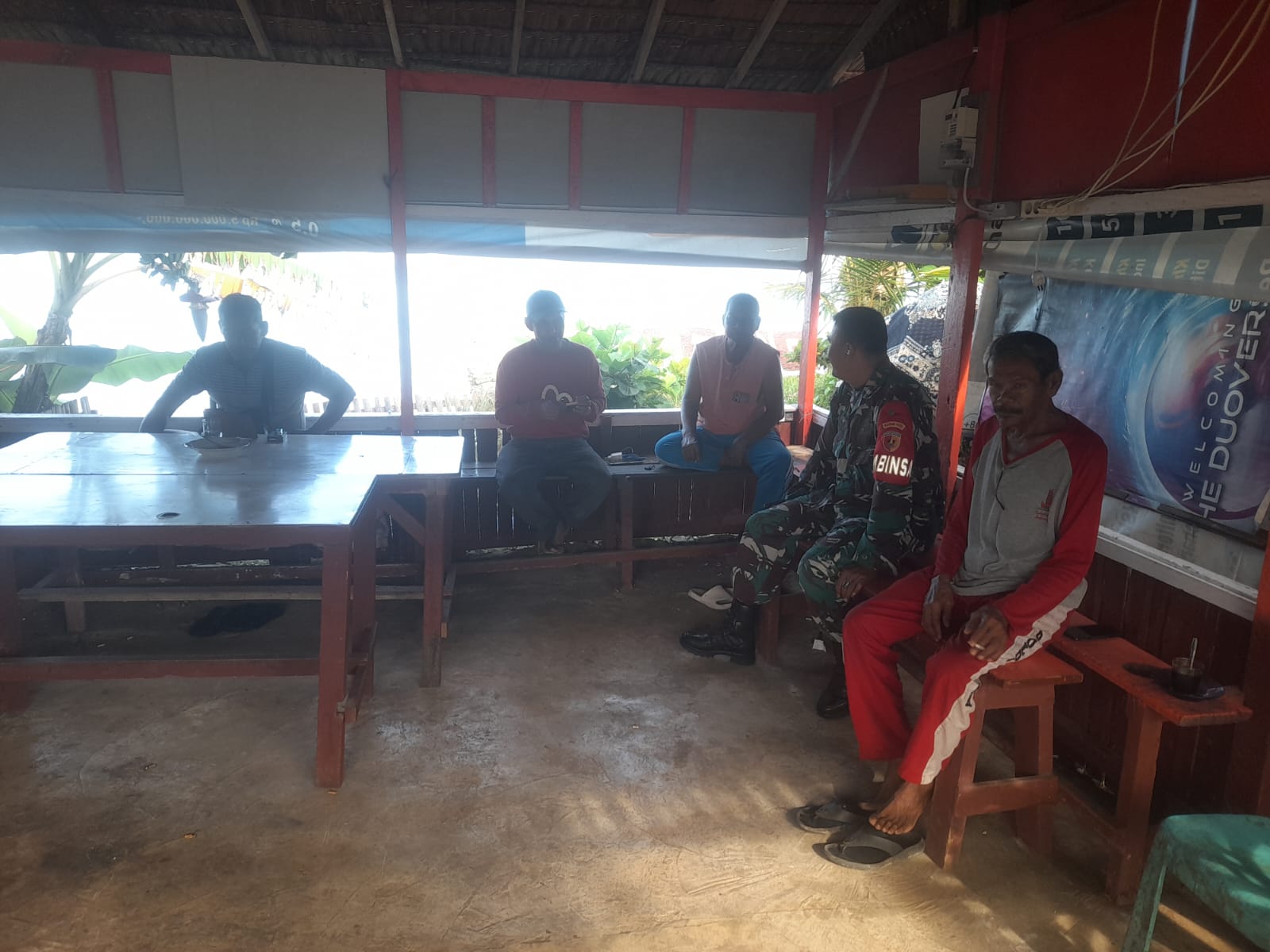 Sertu Hendri Patrizon dengan penuh empati mendengarkan setiap cerita yang disampaikan para nelayan. Ia juga memberikan motivasi agar masyarakat tetap sabar dan waspada dalam menghadapi kondisi cuaca yang tidak bersahabat.