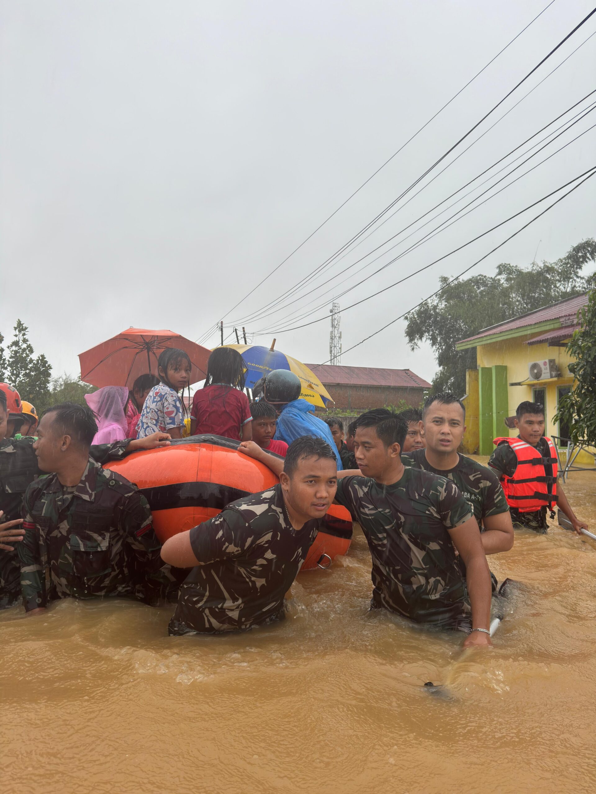 Di tengah kepanikan, suara komando terdengar. Tim Satgas Tanggap Bencana Lanud Sutan Sjahrir bergerak cepat, menembus hujan yang belum juga reda. Mereka datang bukan hanya membawa perahu karet, tetapi juga membawa harapan bagi warga yang terjebak banjir.