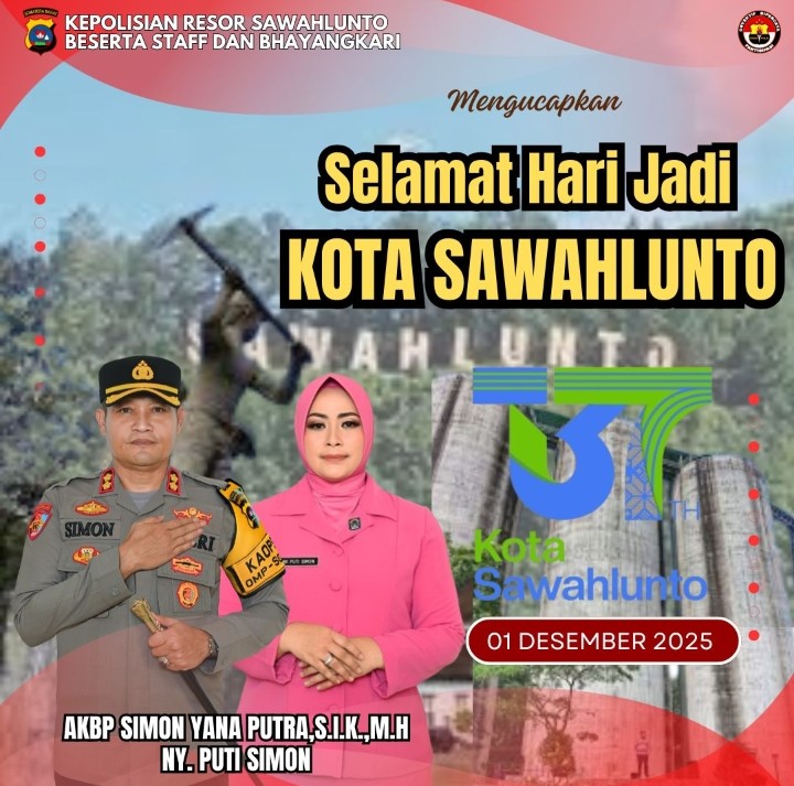SAWAHLUNTO | Sawahlunto kembali merayakan hari jadinya, sebuah kota tua yang dibangun dari sejarah panjang industri tambang dan kini tumbuh menjadi kota heritage yang menjaga jati dirinya dengan penuh kebanggaan. Pada momen ulang tahun ke-137 ini, Kapolres Sawahlunto AKBP Simon Yana Putra, S.I.K., M.H, bersama Ny. Puti Simon, menyampaikan ucapan selamat sekaligus pesan reflektif bagi seluruh masyarakat kota.
