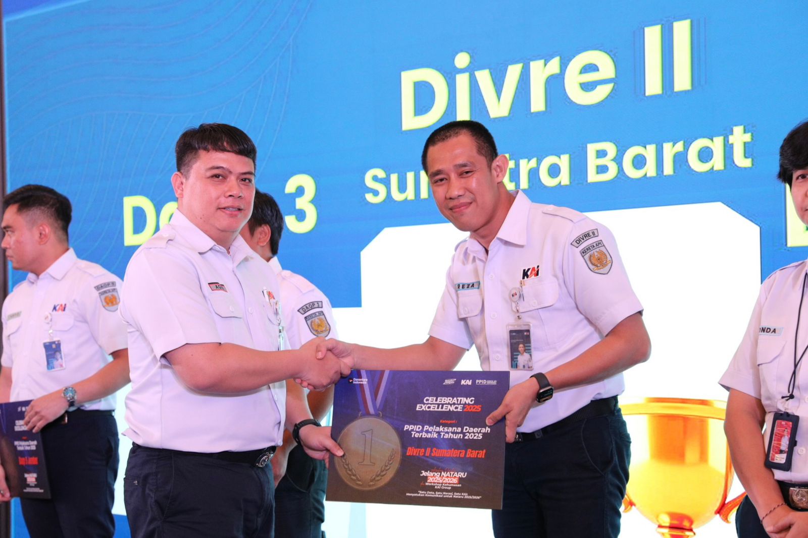 Kepala Humas Divre II Sumatera Barat, Reza Shahab, hadir langsung menerima penghargaan. Raut wajahnya mencerminkan kelegaan sekaligus kebanggaan. Dalam kesempatan itu, ia menuturkan bahwa penghargaan tersebut adalah hasil dari kerja kolektif seluruh tim Humas Divre II Sumbar.