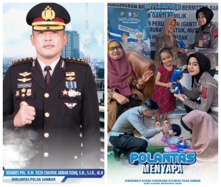 PADANG, SUMBAR | Tidak semua bentuk pelayanan publik diukur dari seberapa cepat administrasi selesai. Kadang, kehangatan dan kepedulian kecil justru meninggalkan kesan besar di hati masyarakat. Hal inilah yang ingin dihadirkan oleh Direktorat Lalu Lintas (Ditlantas) Polda Sumatera Barat di bawah kepemimpinan Kombes Pol H.M. Reza Chairul Akbar Sidiq, S.H., S.I.K., M.H., melalui program bertajuk “Polantas Menyapa.”