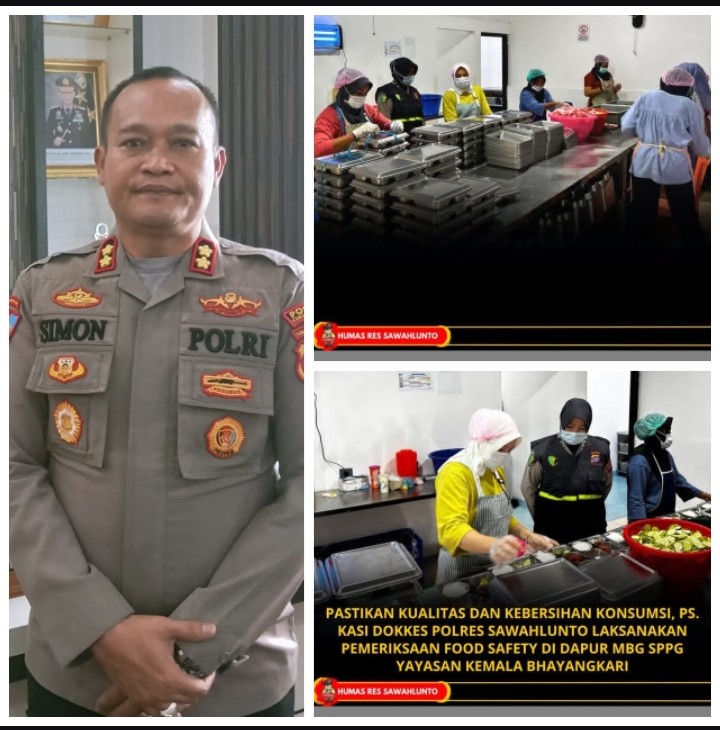 Sawahlunto | Di tengah kesibukan menjaga keamanan dan ketertiban masyarakat, Kapolres Sawahlunto AKBP Simon Yana Putra, S.I.K., M.H. tetap menaruh perhatian besar pada aspek kesehatan dan kesejahteraan keluarga besar Polri. Salah satu wujud nyata kepedulian itu terlihat ketika Polres Sawahlunto melalui Seksi Dokkes melaksanakan pemeriksaan keamanan pangan (food safety) di dapur MBG SPPG Yayasan Kemala Bhayangkari.