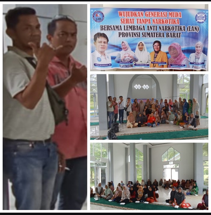 Turut hadir pengurus inti LAN Sumbar: Titik Susiani, M.Pd (Wakil Ketua I), Dr. Desri Nora, M.Pd (Ketua P4GN LAN Kota Padang), Rahmawati, M.Pd (Ketua Divisi Humas), Fitri­diah, S.Pd, MM (Ketua Divisi Rescue), hingga Dr. dr Erdanela Setiawati, MM, FISPH, FISCM yang mengingatkan pentingnya kesehatan dalam mencegah penyalahgunaan narkoba.