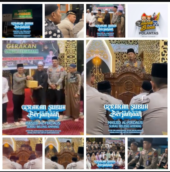 Kegiatan Gerakan Subuh Berjamaah yang dipimpin Wakapolda Sumbar Brigjen Pol Solihin dan Dirlantas Kombes Pol Muhammad Reza Chairul Akbar Sidiq menjadi cermin wajah humanis Polri.